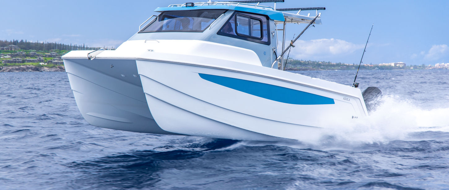 Con un design distintivo, garantisce prestazioni elevate e riduce il rumore sull’acqua. Questo modello mantiene i punti di forza degli altri catamarani Aquila: efficienza, affidabilità e versatilità.